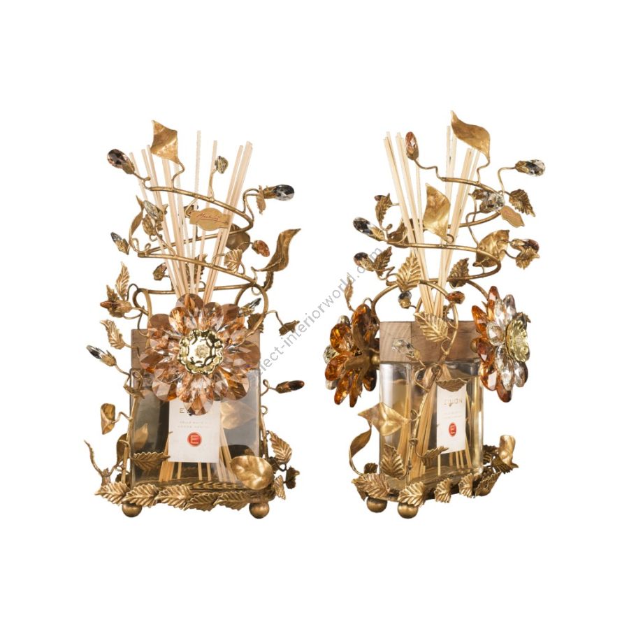 Home Diffuser wrought iron decorated with gold leave, clear and colored bohemian crystal