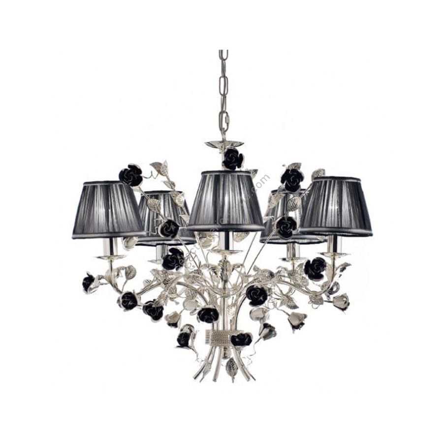 Lighting fittings in chrome metal, this range includes chandeliers with and without shades, table and wall lamps. The light comes through the shades in a direct way.
