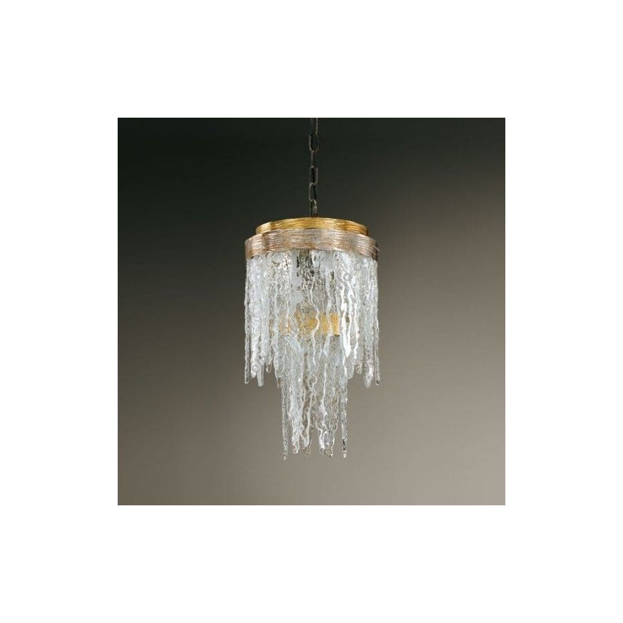 Range of chandeliers and wall lamps with hand worked glasses that reminds the effect of the stalactites. The glasses are created to give to the lamps an ice effect that set up againts the warmness of the frame in gold and silver leaf.
