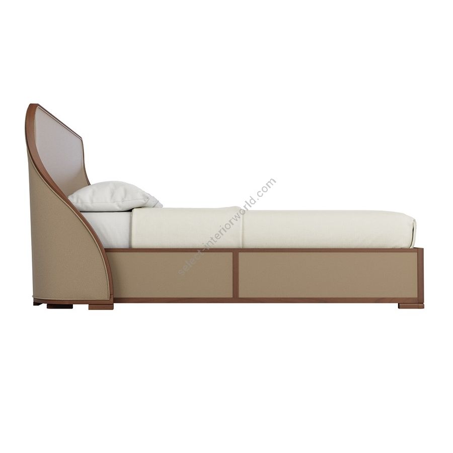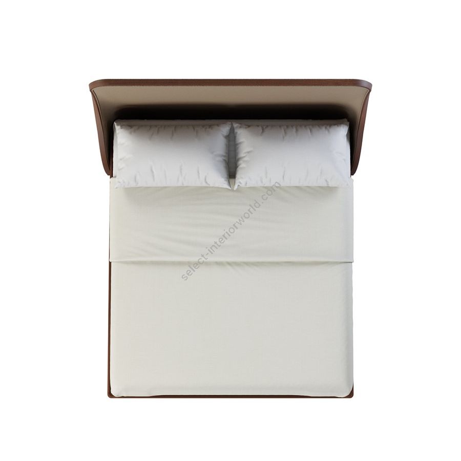 The Orlando is a soft and cozy double bed with sinuous forms that conceals a practical and roomy storage compartment. The bed has a frame made of fine cherry wood and a large headboard padded on both sides, with a particular wooden propeller shaped profile.