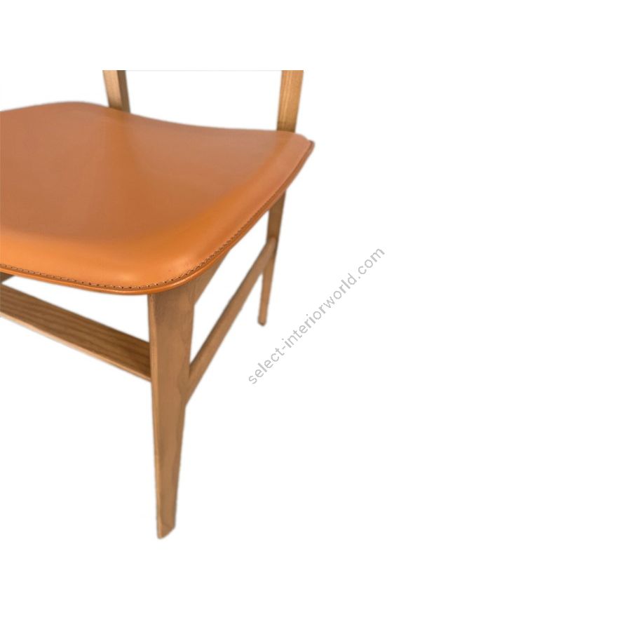 Chair with upholstered backrest. The triangular legs make the ash wood frame very light.