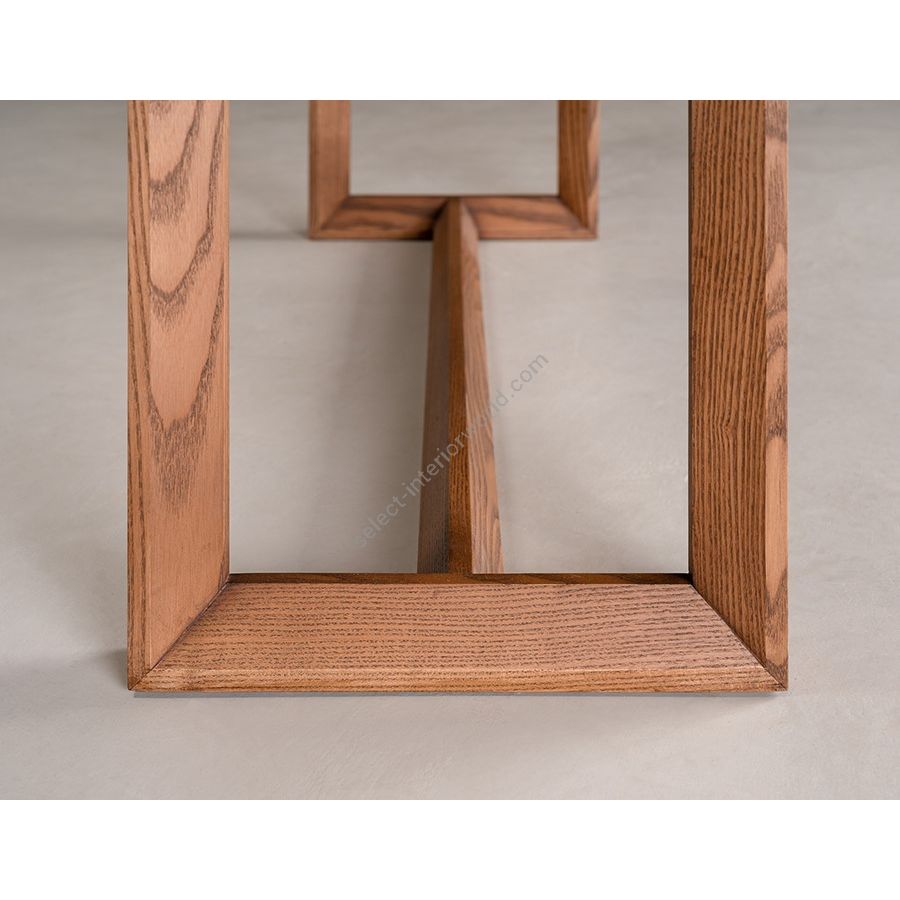 Ash wood console table composed of modules with drawer and open modules, base with wooden structure.