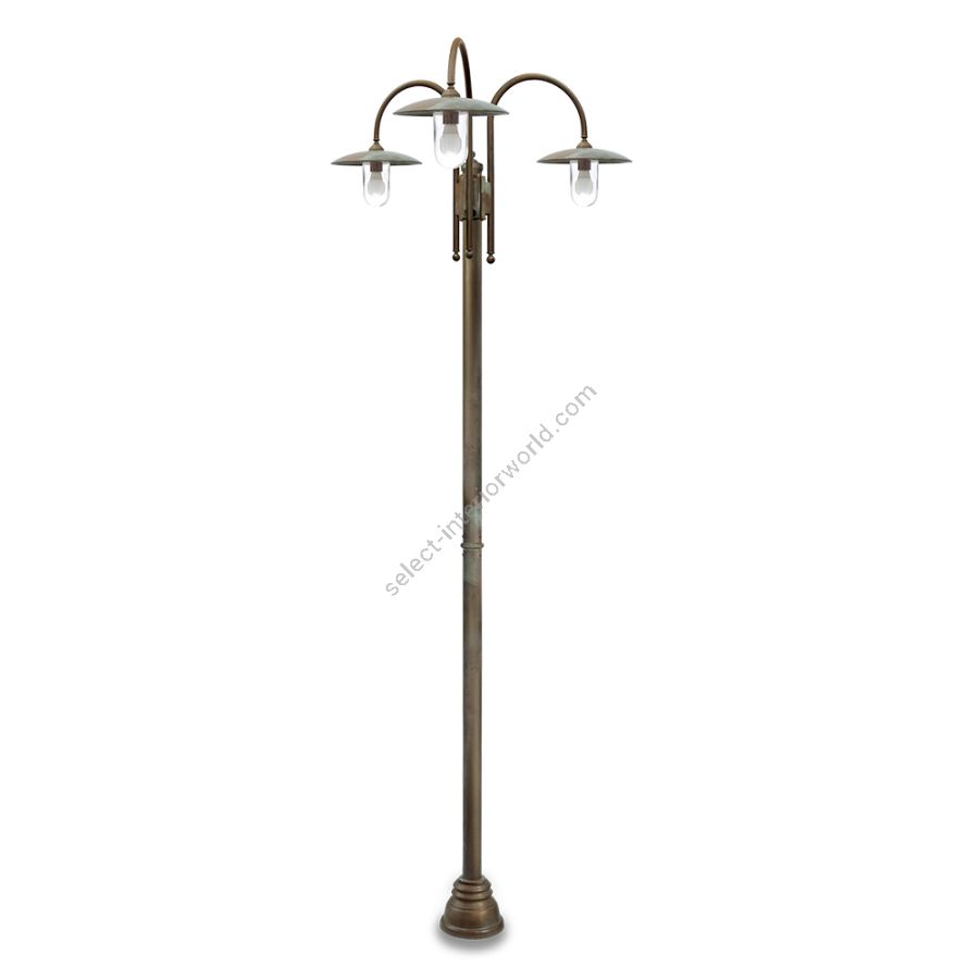 The Trasimeno Brass Pole with 3 Lights from Moretti Luce is a stunning outdoor lighting solution that effortlessly blends style and durability. Standing tall at 270 cm, this pole light is an excellent choice for illuminating large outdoor spaces, such as gardens, driveways, or commercial areas. Crafted from high-quality die-cast brass, the lamp is available in two timeless finishes: antique copper-plated brass (.AR) and dark brown (.BA). These finishes not only enhance the pole's aesthetic appeal but also provide the durability required to withstand even the harshest environments, including coastal, snowy, or calcareous water locations.