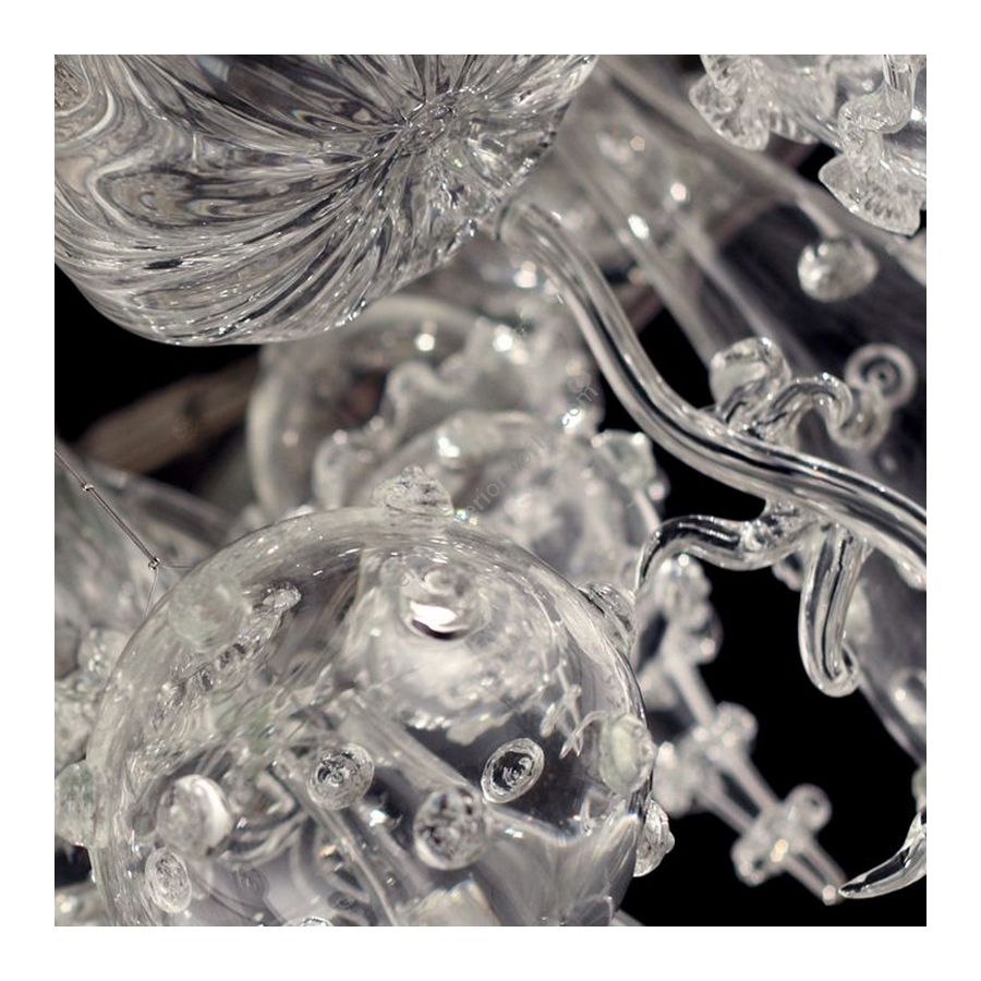 The high quality of this blown glass chandeliers collection lies not only in the decorations – handcrafted with passion and attention to details by our masters glass-worker – but also in the manufacturing of the metal structure and of the lampshade.