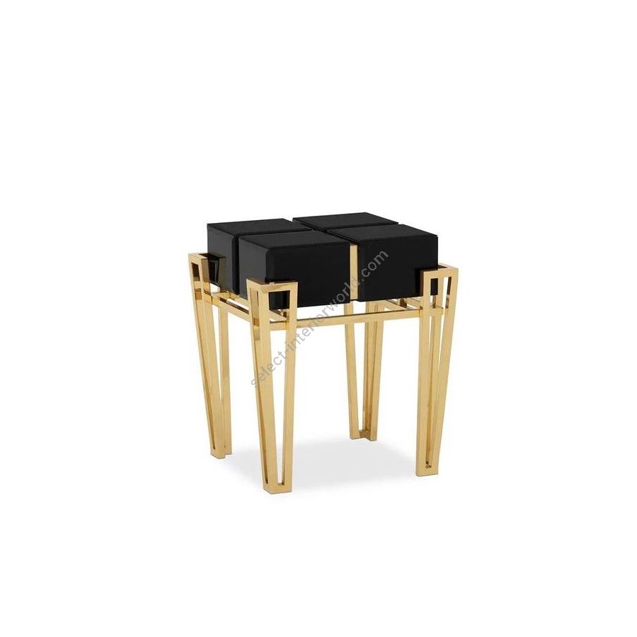 The glorious geometrical construction of the Nubian pyramids shaped the design of this luxury black and gold side table. Characterized by its complexity of noble materials such as glass, wood, and brass, the Nubian Side Table is a complex embodiment of comfort. An auspicious highlight in any ambiance.