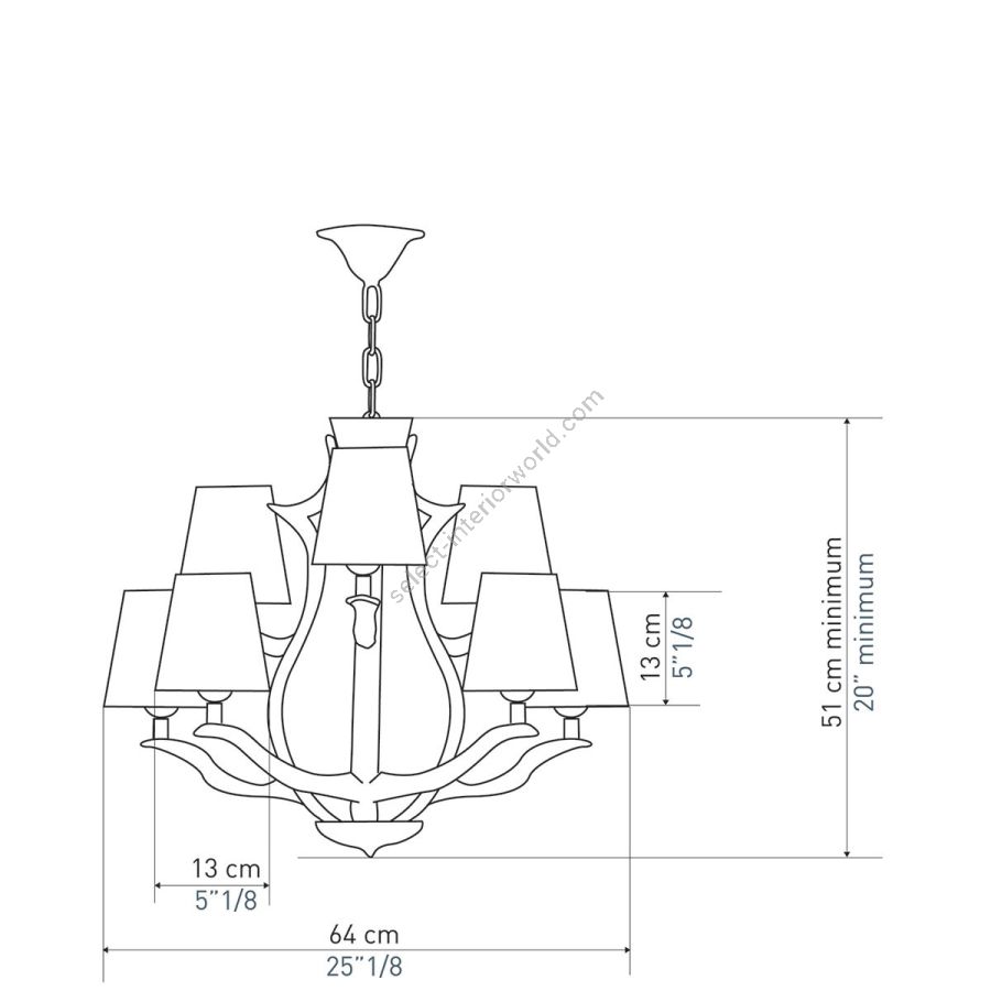 Width: 64 cm, Maximum: 9 x 40 w, Les Abat-jours peuvent être fabriqués dans 18 coloris au choix, The colour for the shades can be chosen out to 18 different hues