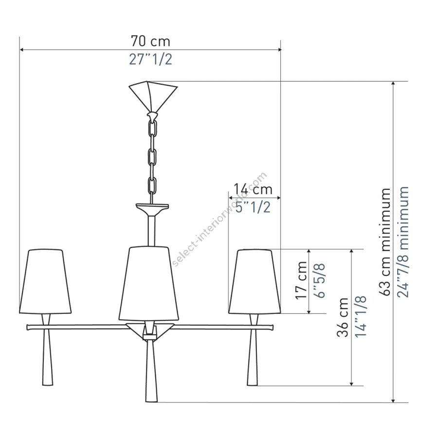 Height: 63 cm minimum, Width: 70 cm, Maximum: 4 x 40 w