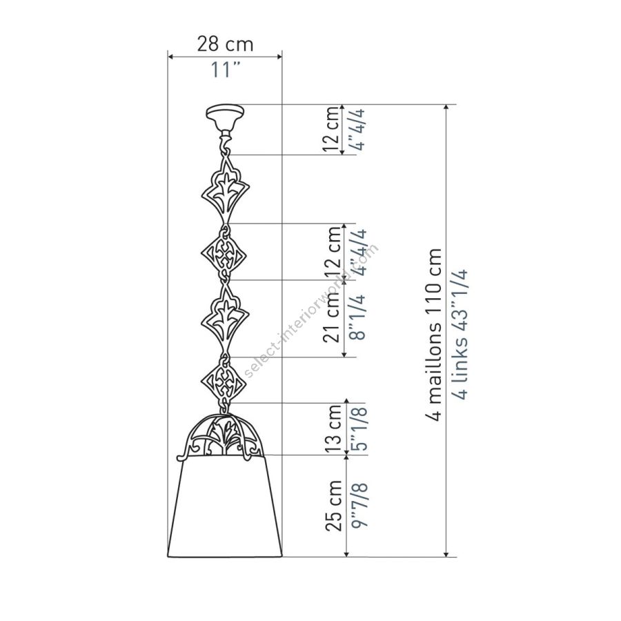Width: 28 cm, Maximum: 60 w, Les Abat-jours peuvent être fabriqués dans 18 coloris au choix, The colour for the shades can be chosen out to 18 different hues