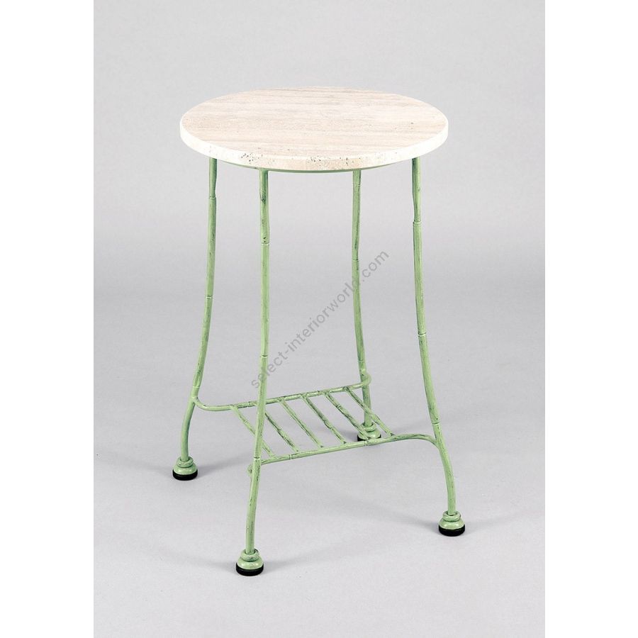 AISI 304 stainless steel round table with Travertino marble top, powder-coated.