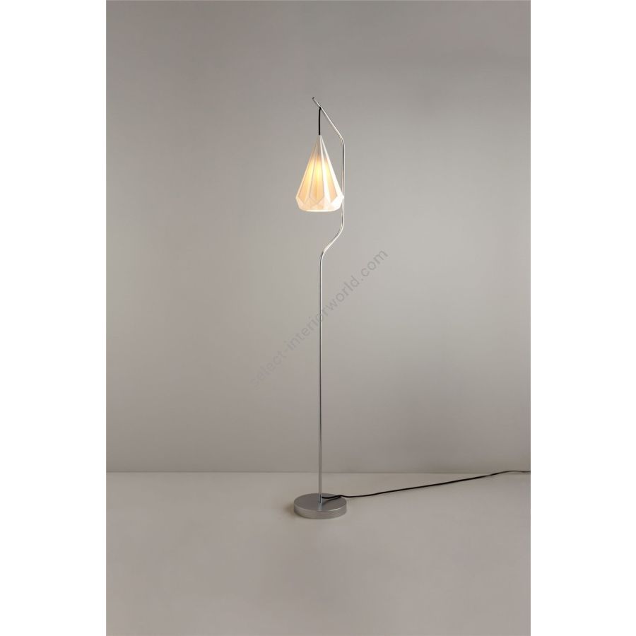 The Hatton Floor Light has a unique, contemporary design. Its exquisite multi faceted shade has been skillfully crafted from bone china, and is matched perfectly with a sleek chrome base. This is an elegant, sophisticated light that will add charm to all interior spaces.