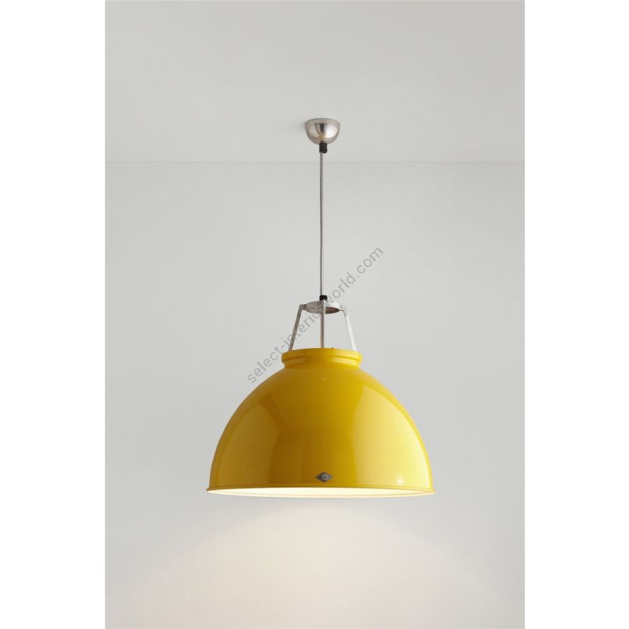 An original 1940s design, frequently seen in factories and industrial units of the period. Available in three different sizes and an array of colours, including polished aluminium, black, yellow, olive green, putty grey, red and white. Supplied with an armour steel braided cable and a choice of contrasting coloured interiors. There is an optional etched glass visor to help reduce glare and create a softer, more diffused light.