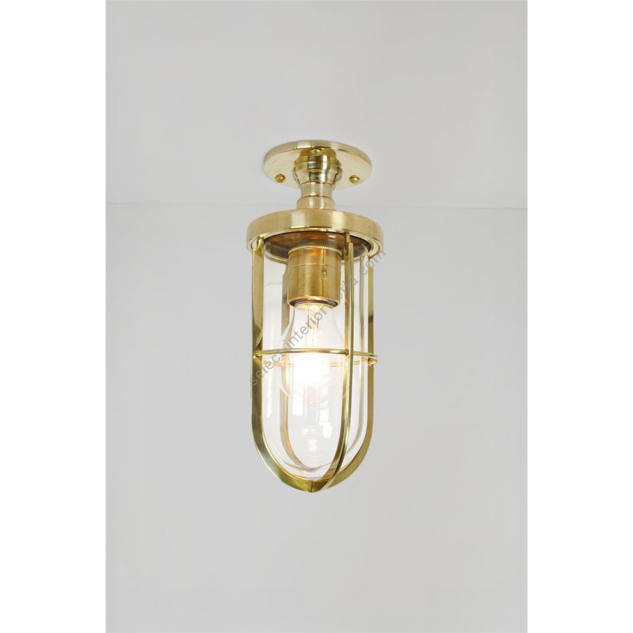 This Ship's Well Glass Ceiling Light is desgined and manufactured with the same attention to detail required for its original industrial purpose. Able to withstand extreme weather conditions, this fixture is IP54 rated. Available in polished brass, weathered brass or chrome plated, with a choice of clear or frosted glass.