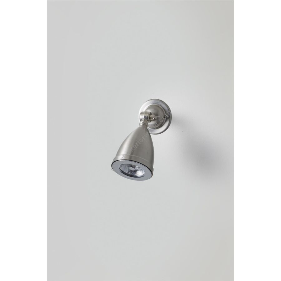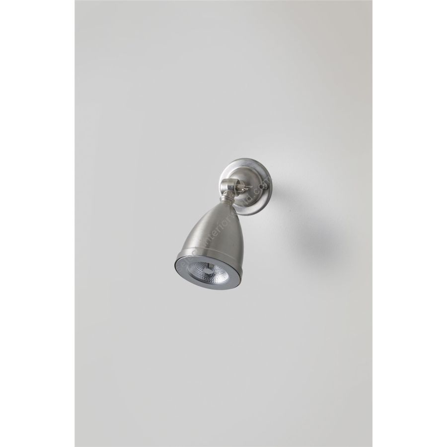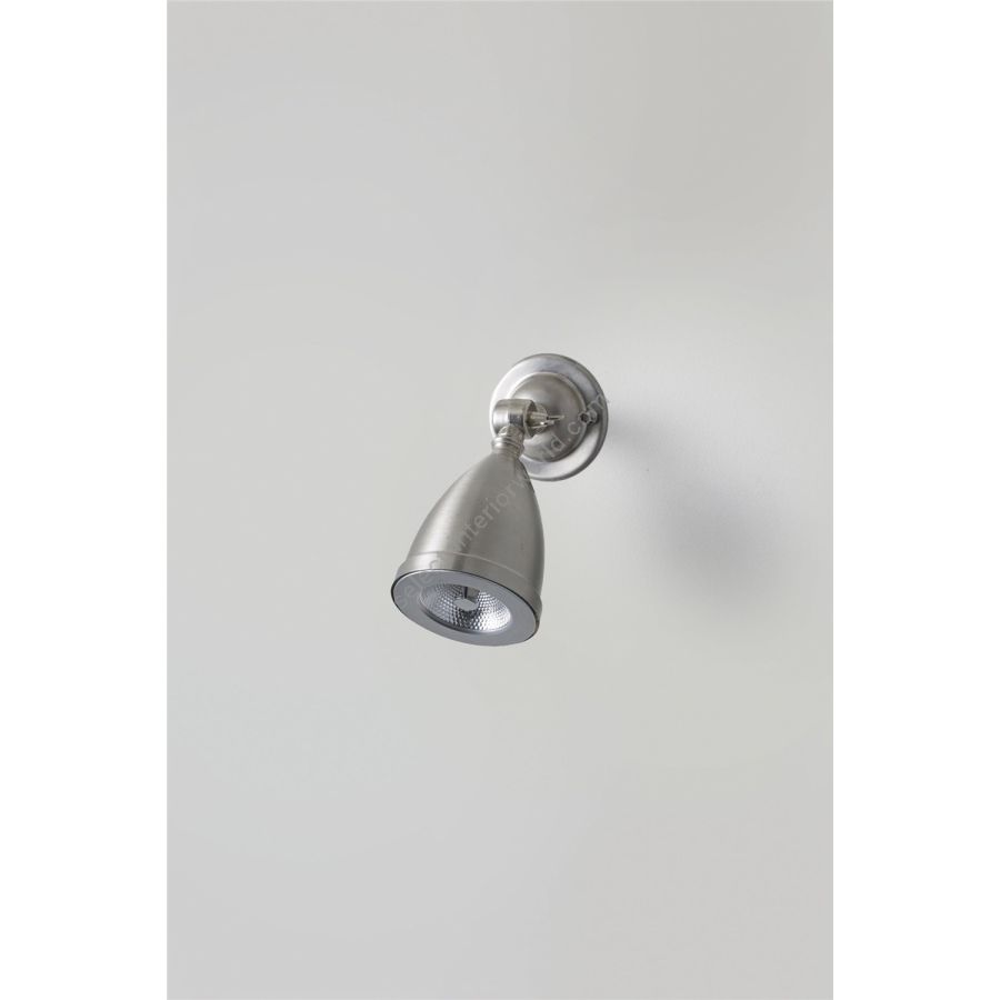 A shaded low voltage Spotlight, with a swivel base and adjustable knuckle joint. Available in nickel plated or weathered brass. The anti glare bar over the lamp makes this a discreet source of spot lighting. A beam angle of 8° spot, 20W. This product requires an additional low voltage halogen transformer to connect to a standard mains voltage circuit, see 'Accessories' for further details.