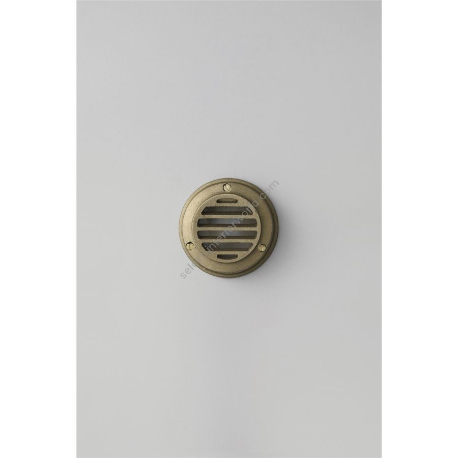 Low Voltage Step or Path Light for surface mounting, available in a sandblasted brass or weathered brass finish. Frosted glass diffuser. This product requires an additional low voltage halogen transformer to connect to a standard mains voltage circuit.