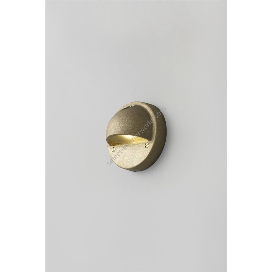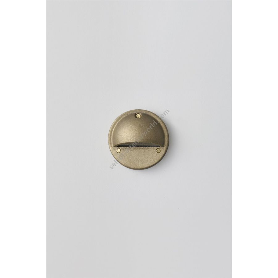 Low voltage step or path light for surface mounting. Cast brass, available in a sandblasted brass or weathered brass finish. Frosted glass diffuser. This product requires an additional low voltage halogen transformer to connect to a standard mains voltage circuit.