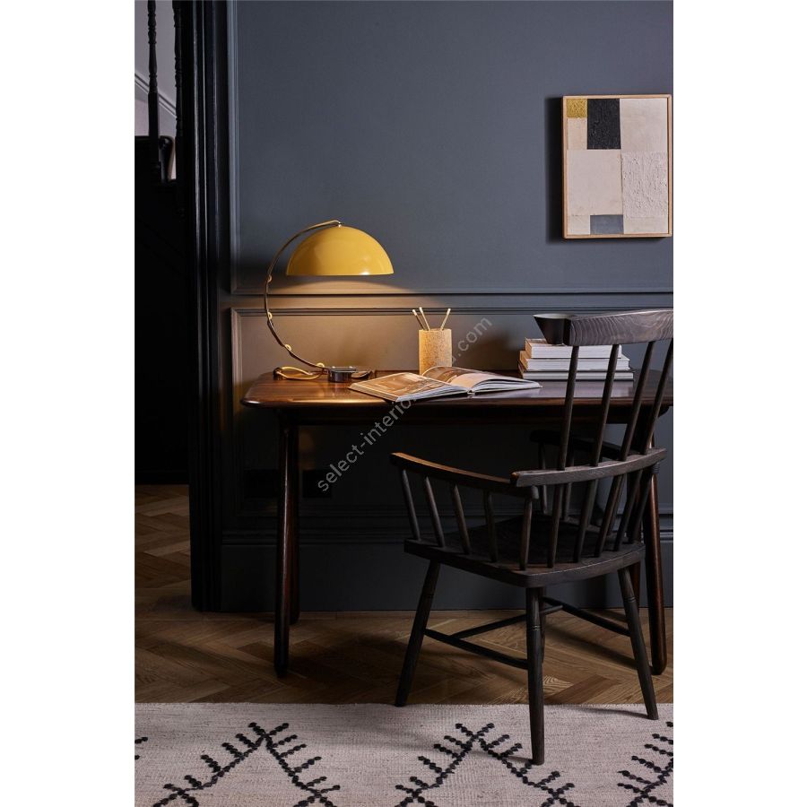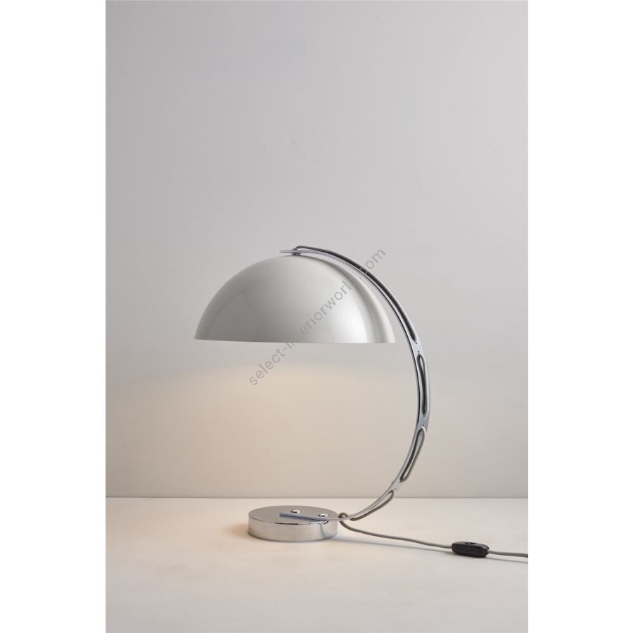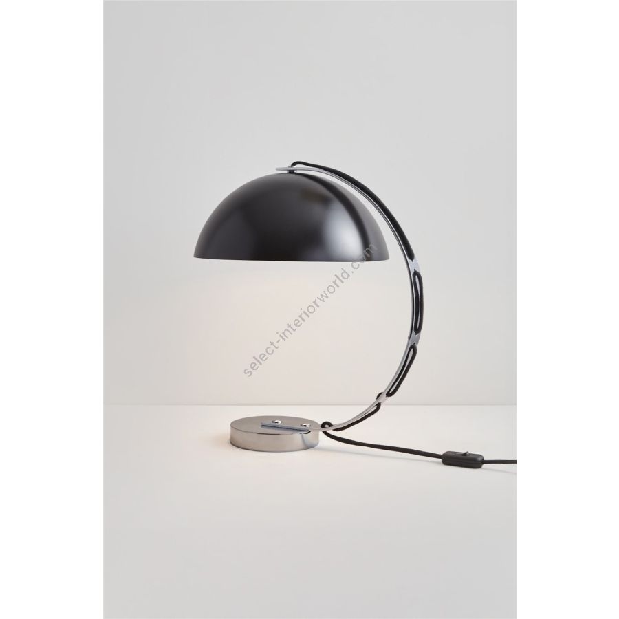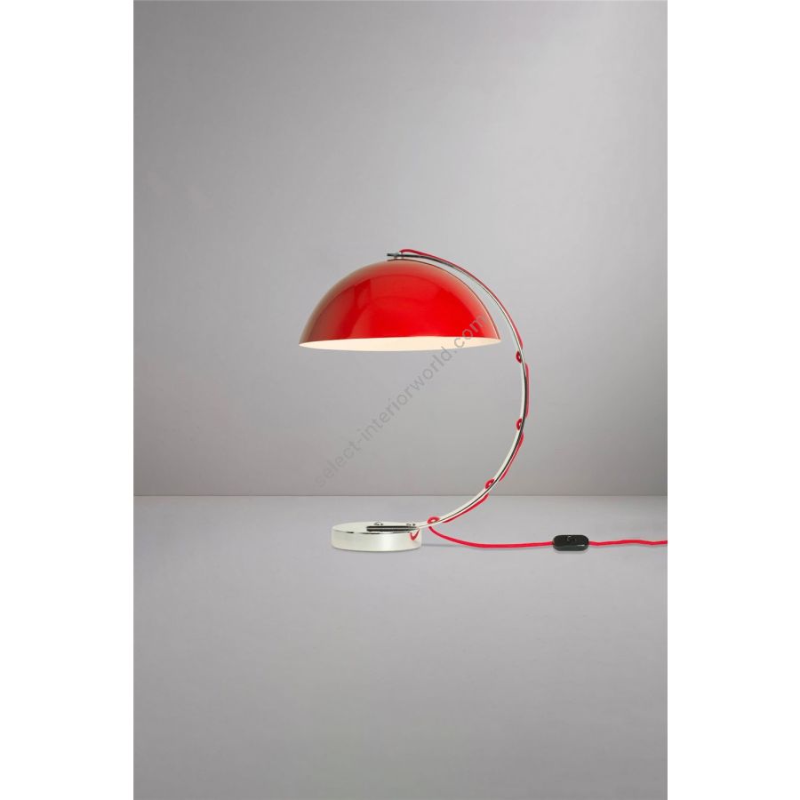 The London table light is retro-flavoured desk light. It features a spun aluminium semi-sphere shade available in black, putty grey, red and yellow with a solid chrome base. Cotton braided flex is woven through the curved chrome arm for a clean-lined, neatly tailored finish.
