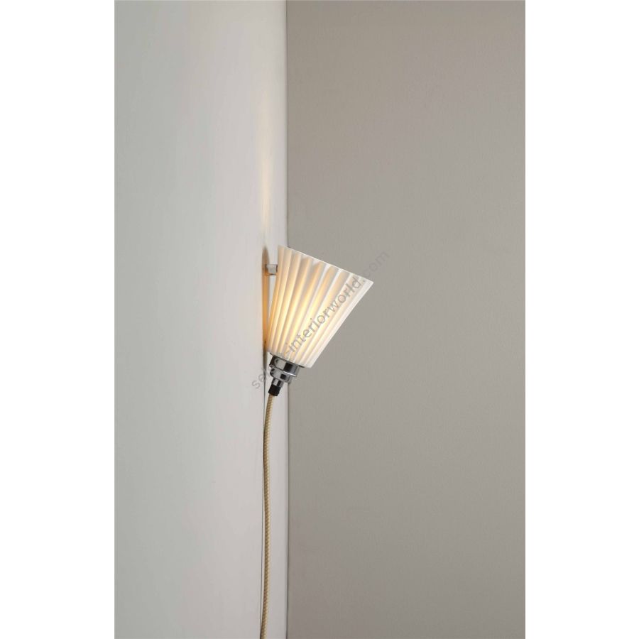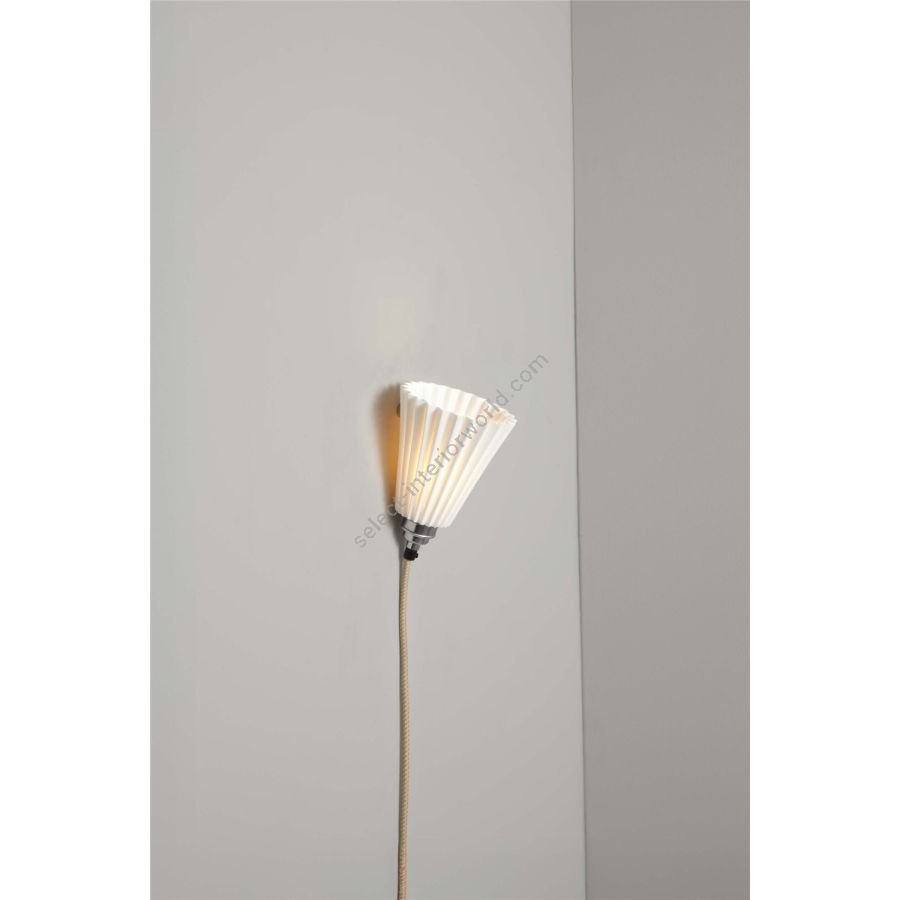 The Portable Pleat is our most flexible wall light. A pleated bone china shade is held to the wall by a satin chromed round wall fixing. Available in two shade sizes, the light has 2.5 metres of cotton braided cable with an inline switch and plug. This allows for the light to be positioned anywhere, without needing hard wiring.