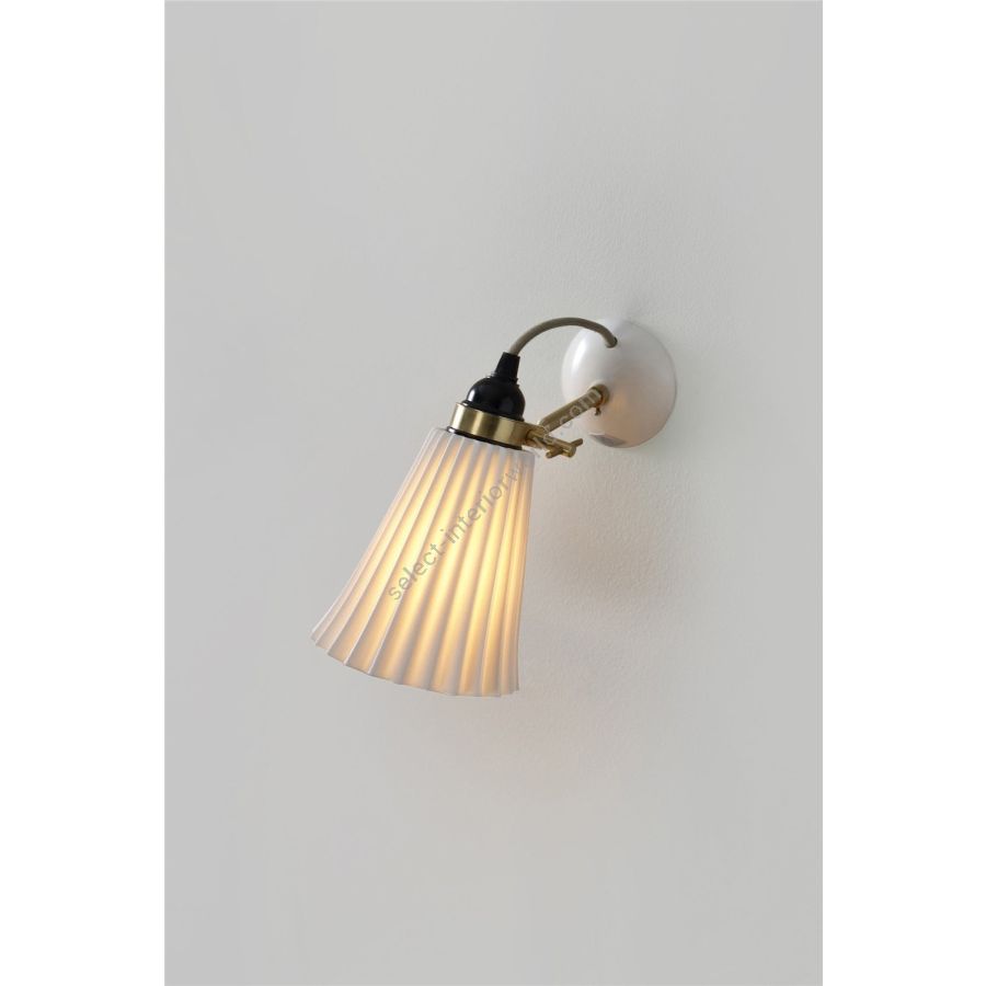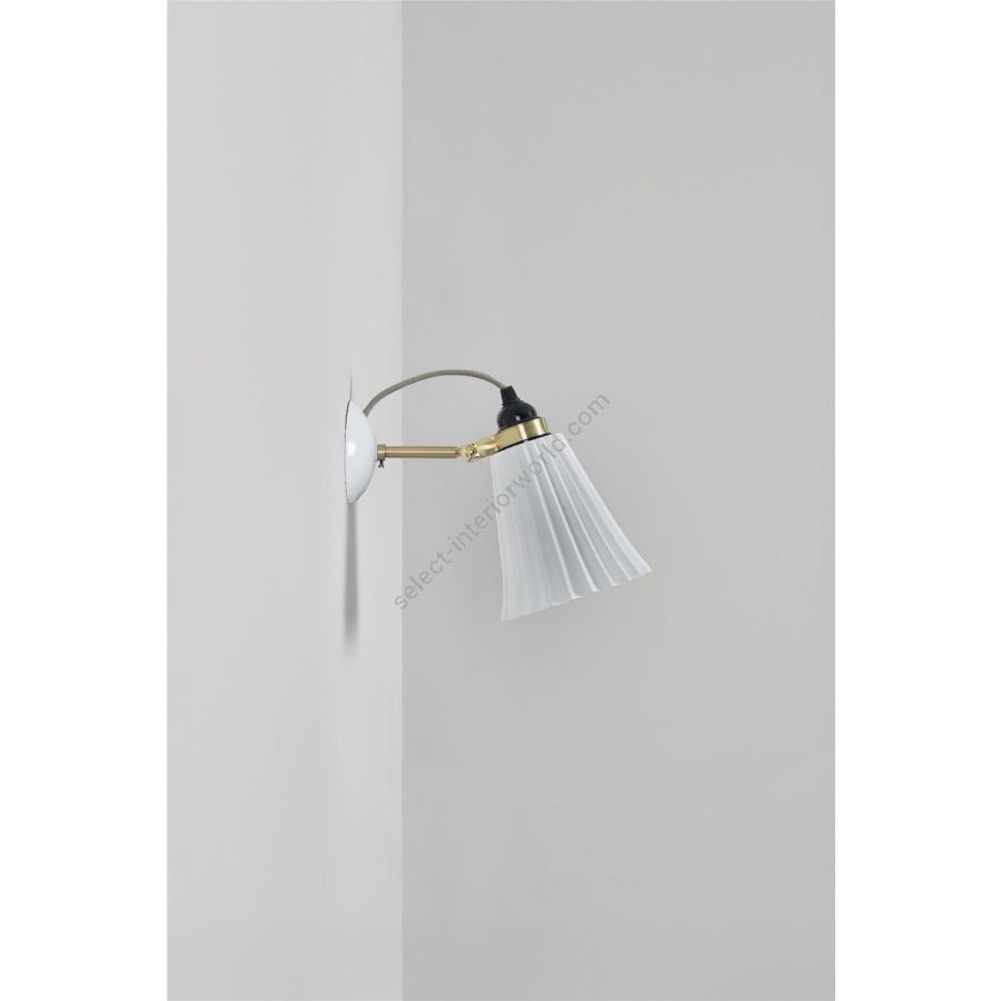 The handmade Hector Pleat Medium Wall Light beautifully marries fine bone china with satin brass accents. Its iconic pleated shade exudes elegance, while the glossy bone china finish is gracefully complemented by the satin brass detailing. With its adjustable clamp, you can direct the light precisely where it's desired. The design is enhanced by our signature cotton braided cable in a calm grey hue.