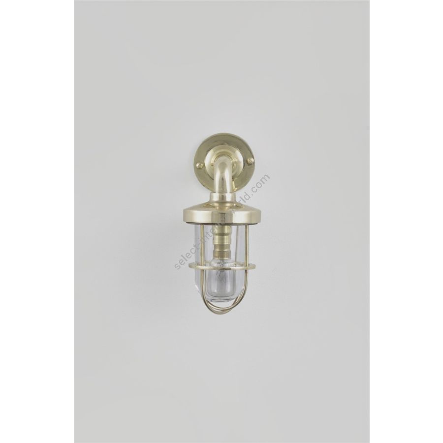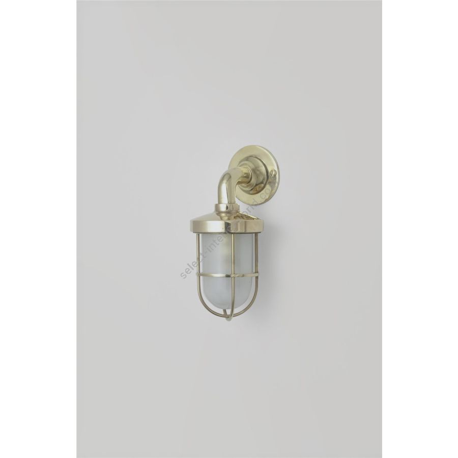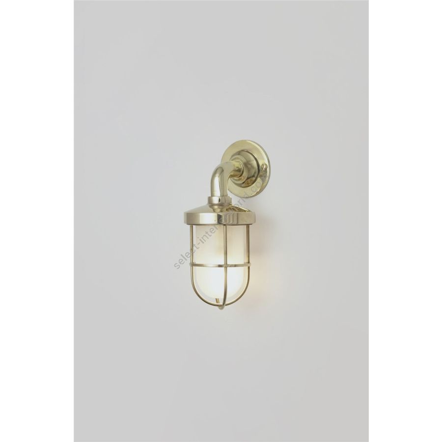 This Mini Ship's Well Glass Wall Light (with guard) is available in three finishes - polished brass (unlacquered), chrome and weathered brass with a choice of clear or frosted glass. Able to withstand extreme weather conditions, this fixture is IP54 rated.