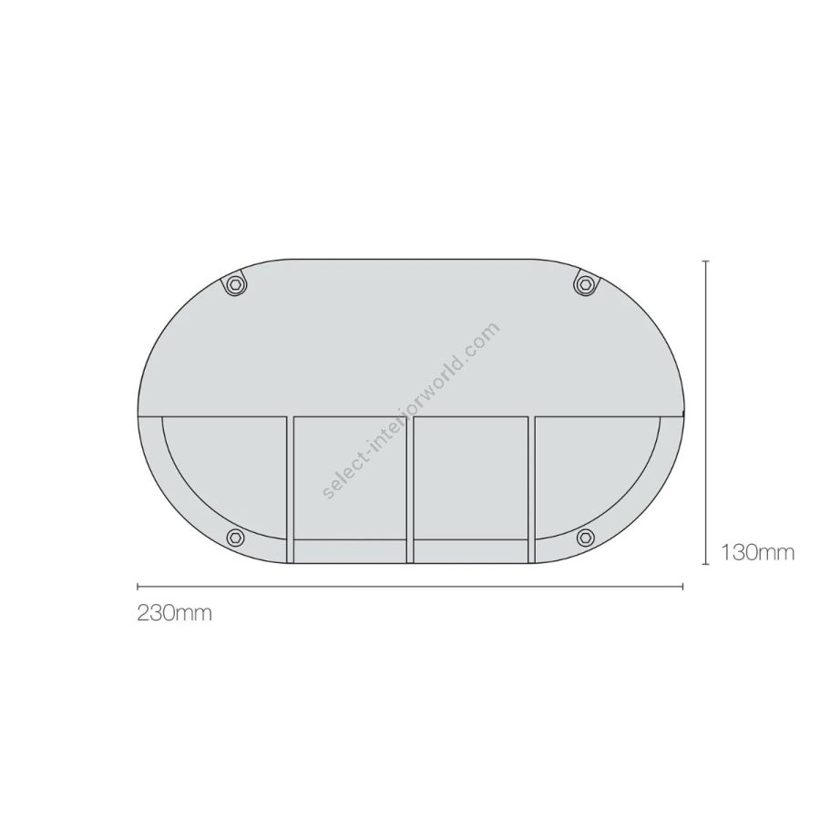 Oval, die-cast aluminium bulkhead in three versions: unguarded, guarded and semi-shielded. Natural zinc-grey finish with frosted glass diffuser. Front bezel secured by stainless steel socket head screws. Rear cable entry. Through backplate fixing.