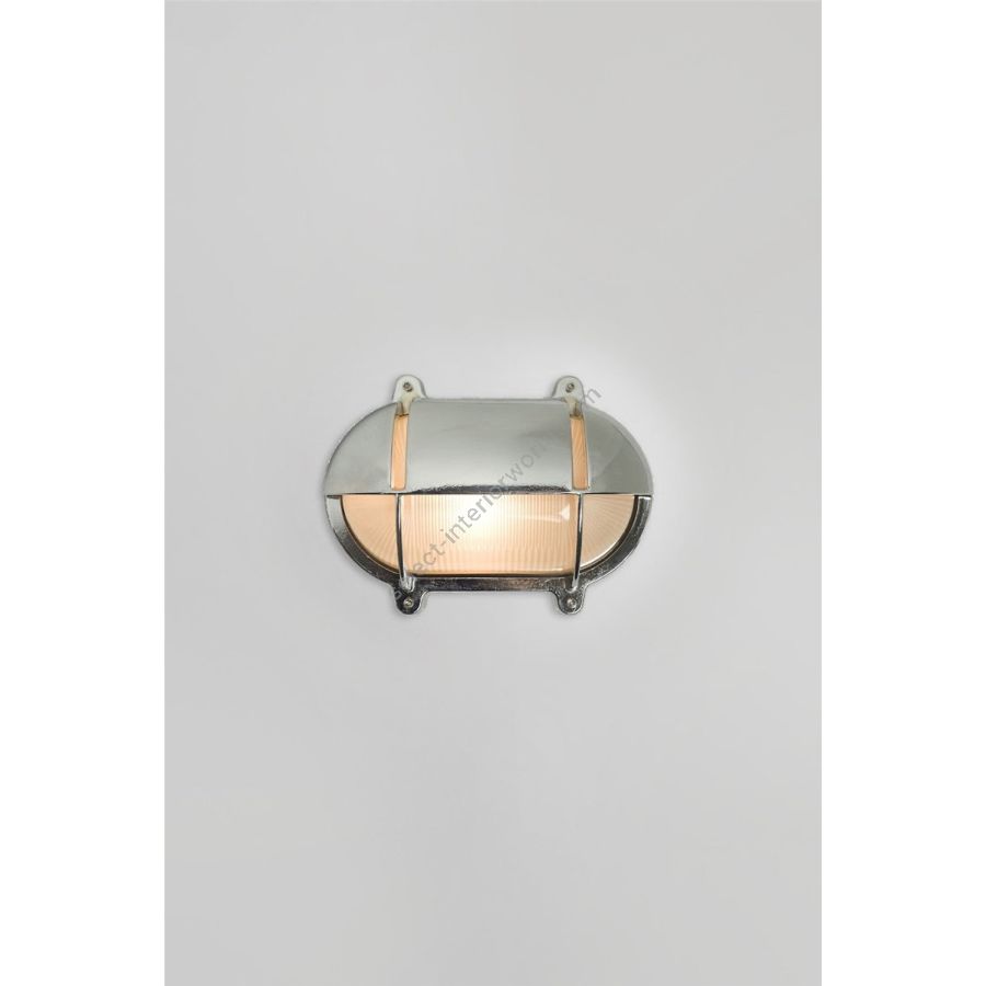 Davey's die-cast bulkhead is a traditional light fixture with frosted prismatic glass diffusers and horizontal eyelid shields, secured with socket head screws. Rated IP54, this robust bulkhead is well suited to all environments, including exteriors and bathrooms. Available in natural brass (unlacquered), weathered brass and chrome plated finishes, and three sizes.