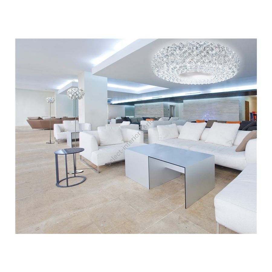 Lightweight ceiling light in multifaceted and very bright clear acrylic. Available in different sizes.