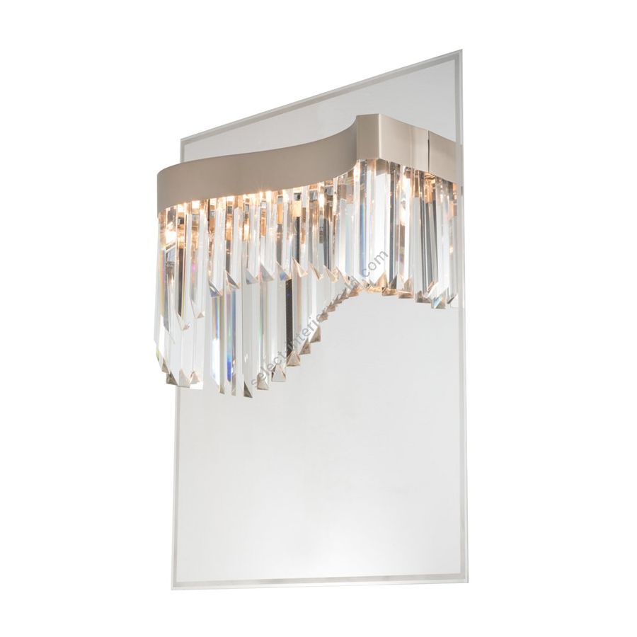 Dimmable led wall light embellished with triangular section crystal rods on a mirror stainless steel base. Very bright wall light.