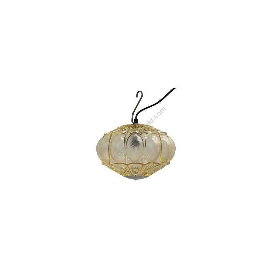 Three rounded shapes with a retro charm, suspensions of smoked or straw yellow coated glass. The interior of them is covered with vitrified decoration that lets light spread and take on a new look.