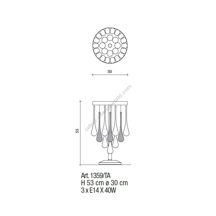 Table lamp with ""Drop"" Murano glass elements. Lighting item that diffuses the light with great effect in the surrounding environement creating a warm and welcoming atmosphere.