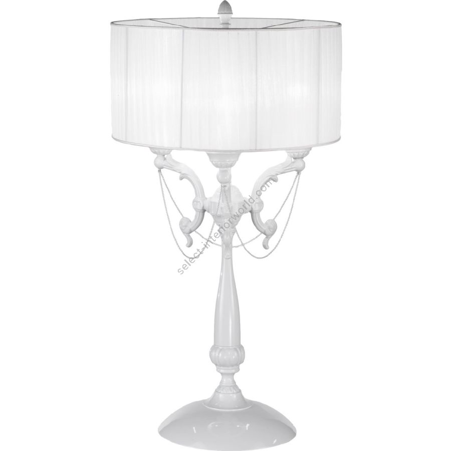 The glossy white finish and the white organza lampshades make the Ginevra collection a modern classic, suitable for more contemporary rooms, while the Antique Bronze finish and the taupe color organza lampshades give a refined appearance. Customizable in finishes and sizes