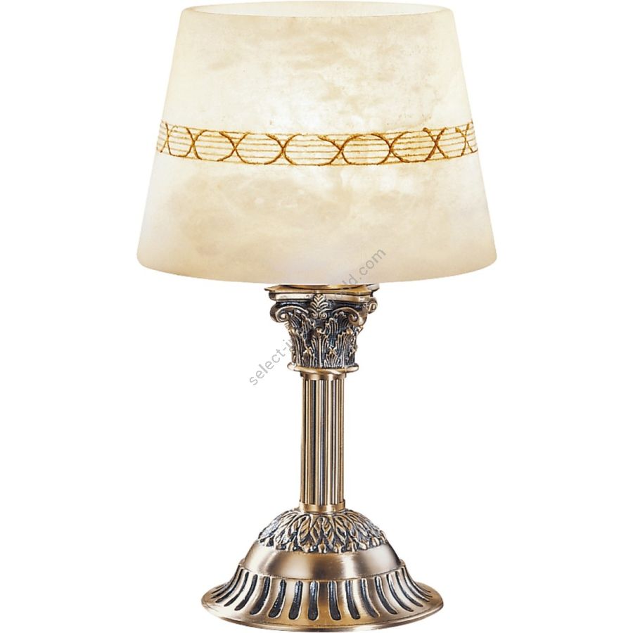 Classic style collection in satin finish brass with antique and decorated alabaster diffusers, composed of chandeliers, wall lamps and table lamps. It is possible to customize finishes and sizes.