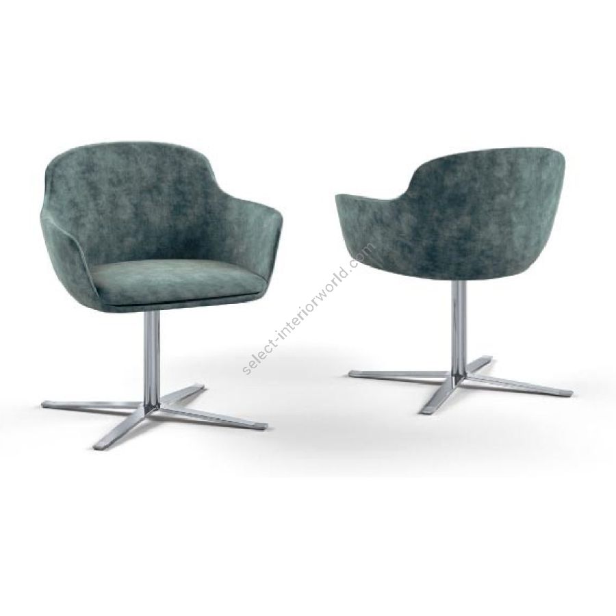 Swivel chair with structural rigid polyurethane shell. Cold-foamed polyurethane padding. Chromed metal rotating base. All the upholstered elements are available in leather, synthetic leather or fabric.