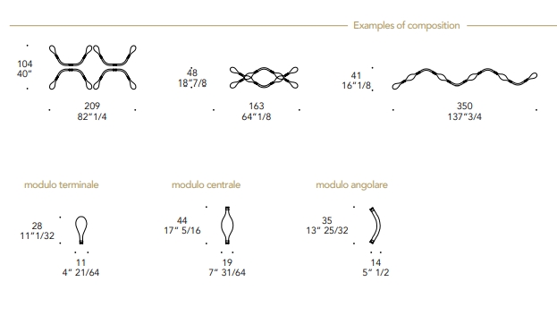 Suspension chandelier consisting of 3 modules (terminal, central, corner) to be combined together. The modules are in transparent blown glass with bubbles and with a chromed metal joint on which the LED bulbs and the electrified suspension cable are inserted.