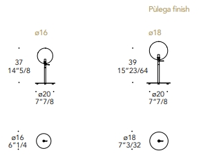 Table lamps fix or with adjustable support with metal base in bronze finish. Glass sphere in shaded sputtering finish silver, copper, bronze or gold or in Pulega finish. LED bulb