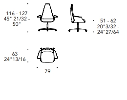 Executive office chair with shell in bronze (100M), brass (104M), dark brass (105M), titanium (101M) finish.