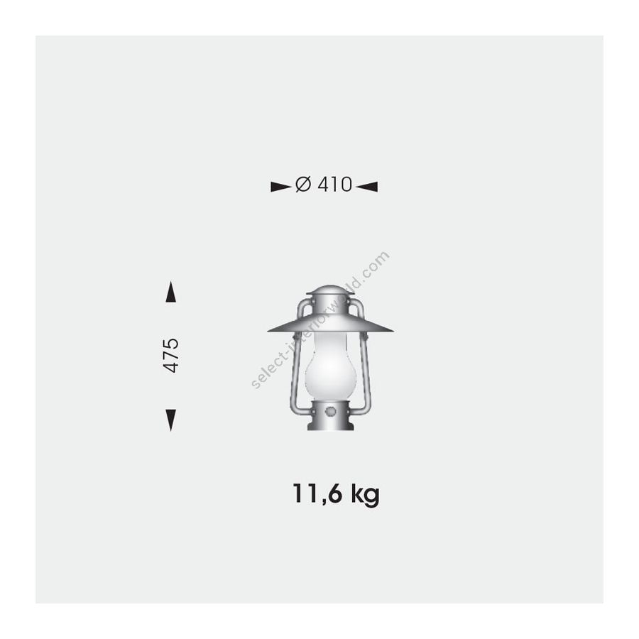 A post lamp in the Naval style belongs to the outdoor collection by Robers (Germany). It has got a laconic design for the base and the column, concentrating the whole attention at the shade. This traditional gas lamp became the main theme when the craftsmen created this lantern as it consists of the typical frame, the trumpet roof with the canopy, and the lampshade repeating the shape of the gas lamp with a lower holder for the bulb. The fixture is fully handcrafted of wrought iron, available in 10 finishes, sustainable, and water/sea-resistant.