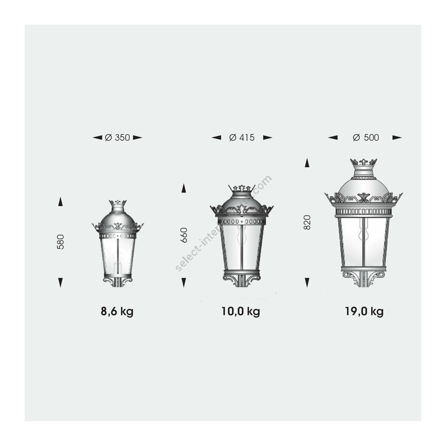 A dual-shade post light is designed by Robers (Germany) as a combination of the most popular styles - Victorian and Classic. They are recognized in the shape of the shades and the decoration of the column. This especially high post lamp provides for a powerful light, serving at the same time as a majestic decoration of the garden or the driveway. Its column has got an uncommon solution expressed in a mixture of shapes and carving, and is crowned by the finial. The lantern-shaped shades support the decorative mood with the floral motifs around the upper and lower parts of the roof. The fixture can be tinted into one of 10 finishes to match the landscape perfectly.