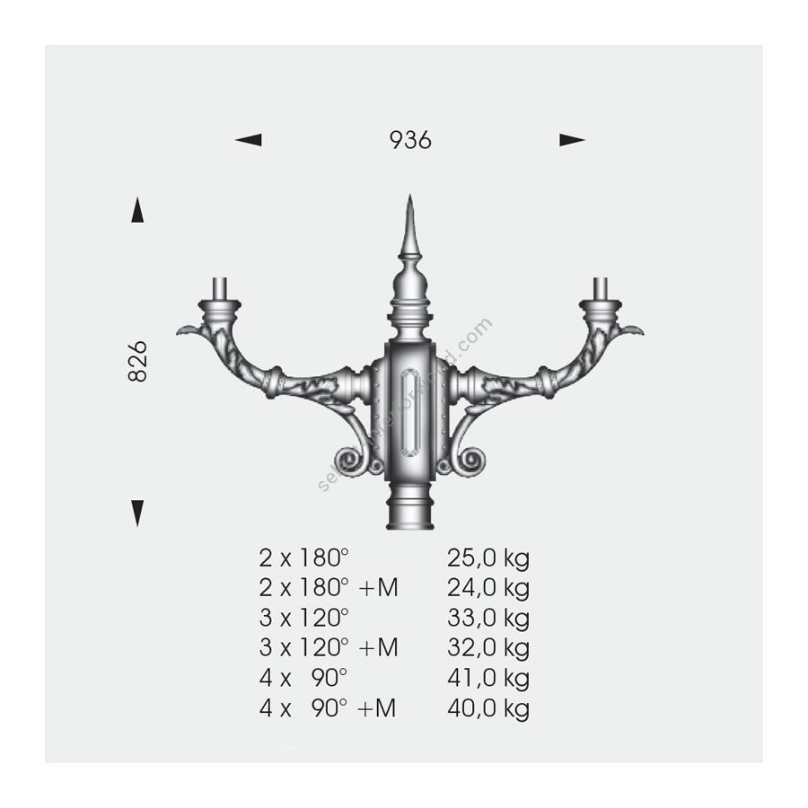 A dual-shade post lamp belongs to the outdoor collection by Robers standing out among all others thanks to the solution for the shade. Handcrafted in the hexagonal shape of blown glass in the antique finish, it’s adorned by the laconic moldings leaving the whole attention at the elegant roof consisting of two materials and two layers ornate by the simple finial. Each shade is provided for one lower holder for the bulb. The base and the column of the wrought iron distinguishes the handcrafted carving with the floral motifs.