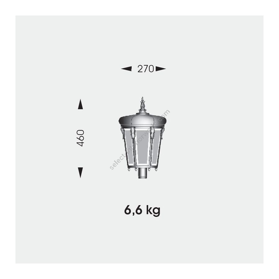 This splendid post lamp designed in a traditional Victorian style belongs to the collection of German brand Robers and becomes one in a line of fixtures with the same design. It’s handcrafted of wrought iron and blown glass to become a unique decoration for your garden, entryway, or driveway. Its shade is crafted of panes frosted, with facets, molded, and decorated in a laconic style. As a traditional post lamp it includes a high column delicately carved. Sustainable and water-resistant, this lamp matches any climate. Available in 10 finishes to become essential for your landscape.