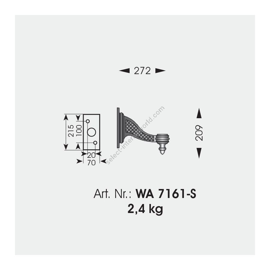 This traditional lantern-style lamp has a Gothic mood that is softened by the Classic touch. The designers of Robers (Germany) feature a lamp with a sophisticated backplate with a solid arm decorated by carving. The tiered finial completes the holder and draws our attention to the lampshade framed by simple iron rods and crowned by the Asian-style roof with a tiny finial on the top. The lamp is provided by a bottom-mounted bracket: the light of the bulb shines through the decoration, spreading the rays of light in a fancy way.
