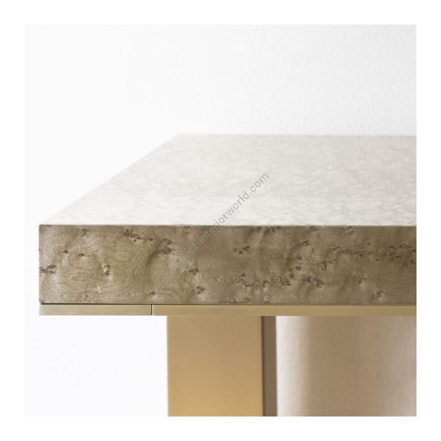 Top available in mat or gloss lacquered, mat or gloss makassar ebony, gloss clay/natural erable or gloss albin wood veneered. Metal base: gloss brass/ gloss chrome / bronze/ satin brass/ pewter/ cloudy bronze.