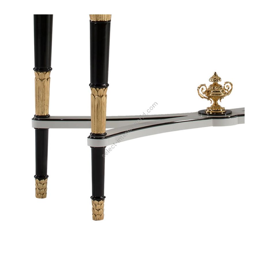 Console table from the Wellington collection is a Neo-classical creation inspired by the Imperial era characterised by bronze ornaments with a gold finish, intricately inlaid table tops, chairs with elegantly shaped backs and the entire collection is carvings decorated with antique gold leaf.