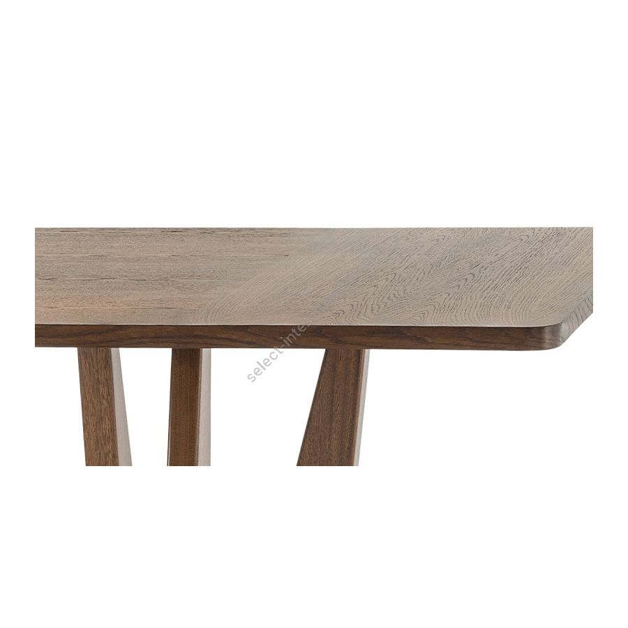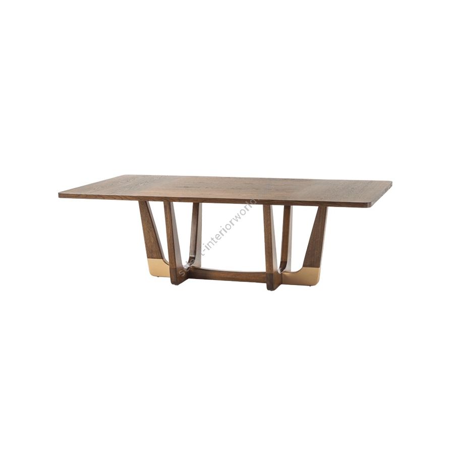 The Rumba dining table is light, functional and focused on detail. The top has meeting veneers and soft curvy edges. Its base has gold details which stand out the sinuous shapes of the Rumba collection.