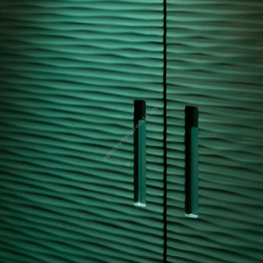 Sliding door in carved wood with horizontal or vertical Onda texture on both sides. Metal handle carved into the thickness of the door.
