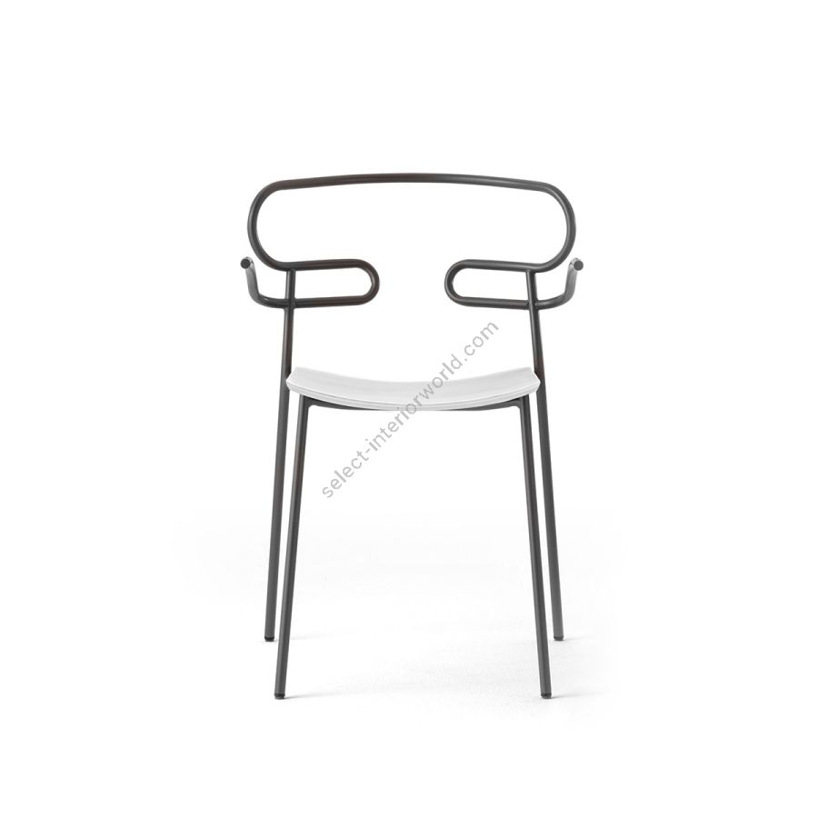 The Genoa chair collection, by talented young designer Cesare Ehr, featuring a stool and a chair with armrests, is also available in an outdoor version. The distinguishing element is the ‘one-line’ backrest, obtained by curving a single metal tube which - with its virtually endless wavy line, also extended to the armrests in this new version - is an elegant addition to every space, bringing a sense of lightness.The outdoor version of the chair will be presented at Salone del Mobile 2019. With integral body in polyurethane, mass painted in the mould, it is also available with a woven backrest in coloured rope to enhance both its look and the level of comfort provided.The frame in powder-coated tubular metal comes in a wide variety of colours; the slightly curved seat - for the indoor versions - is in ash wood (left au naturel or painted) or upholstered with various fabrics, leather or eco-leather.