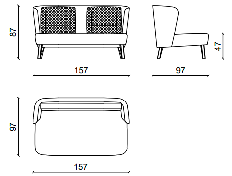 | Dimensions (HxWxD): | cm.: 87x157x97 / inch.: 34.25"x61.81"x38.19" |