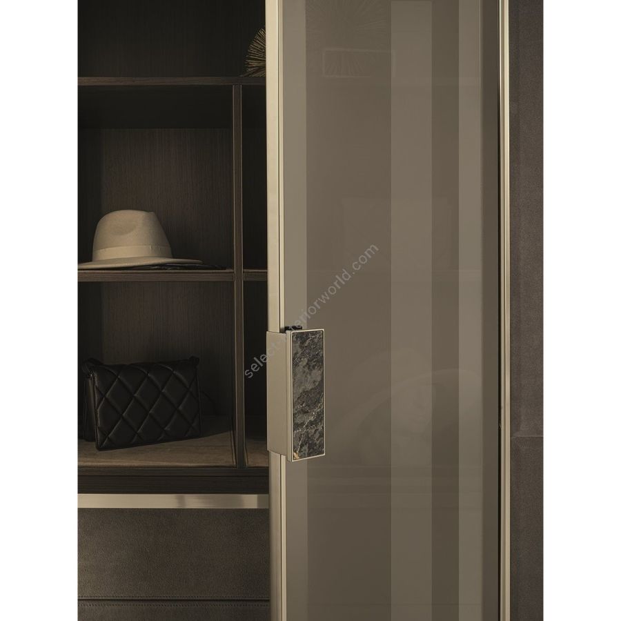 The versatile modular system Atelier merges into a luxurious and all-embracing environment that is ever modern and can never be taken for granted. Edge of the line organisation of interiors with endless customisation options: chest of drawers, valet trays, bag compartments and shirt compartments create a practical and functional wardrobe. Precious elements studied to the last detail, such as mini chest of drawers and mirrors enhance the luxurious features of the composition. Aluminium profiled doors and handles with a marble insert are underscored by exclusive full height LED lighting.