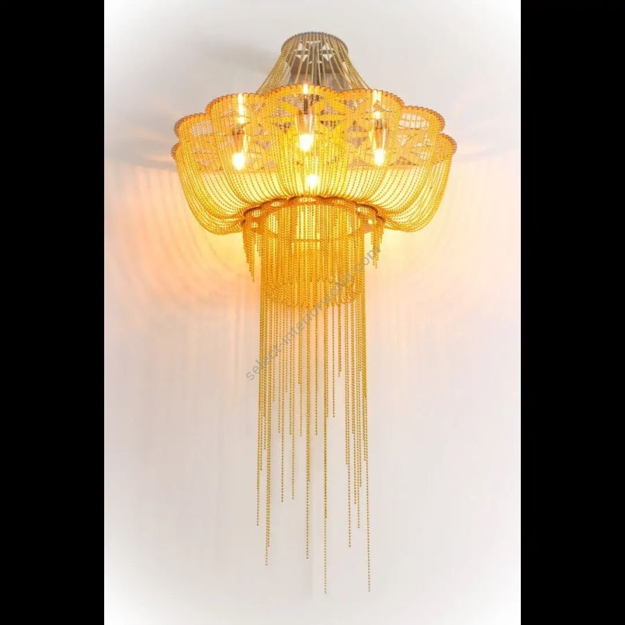 An extension of the existing `Flower of Life` chandelier collection now also available as a matching wall sconce. Illuminated by 5x G9-Halogen or LED lamps.