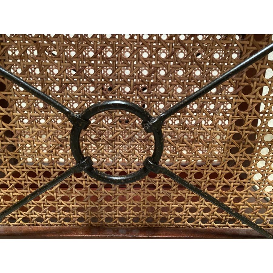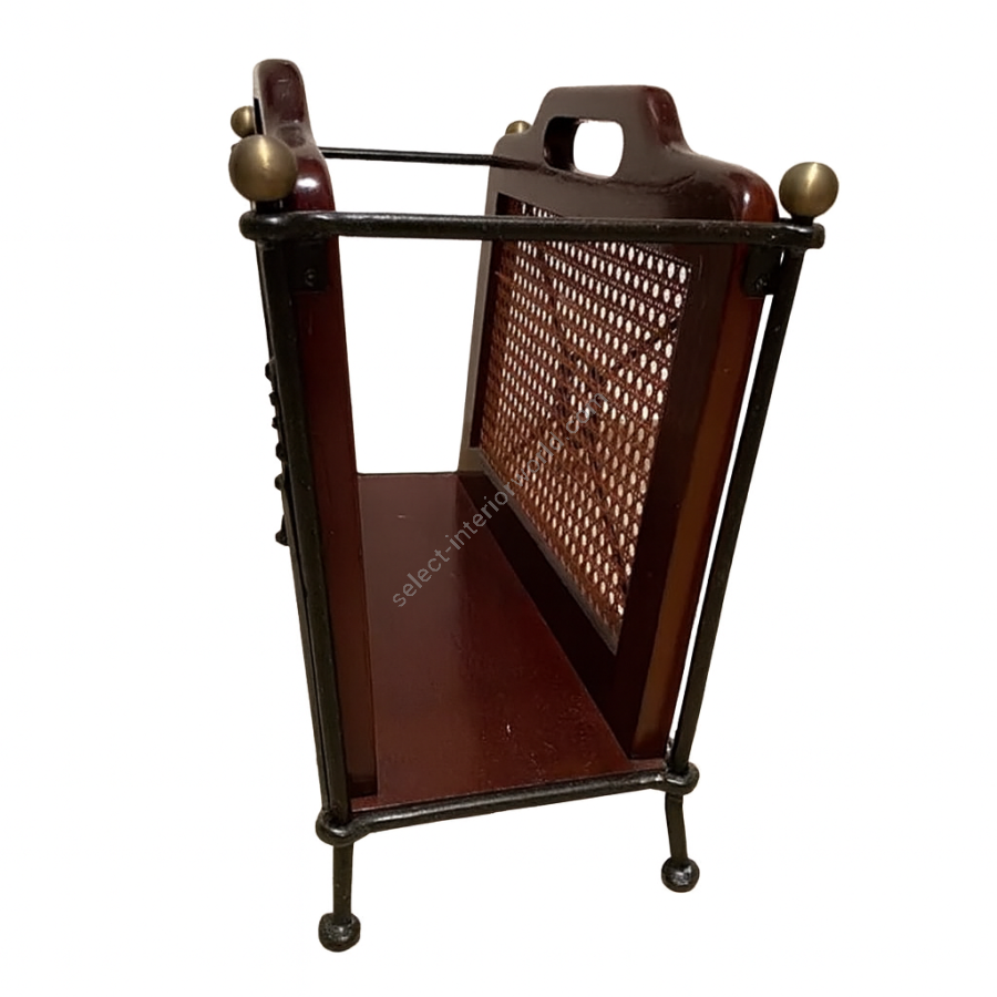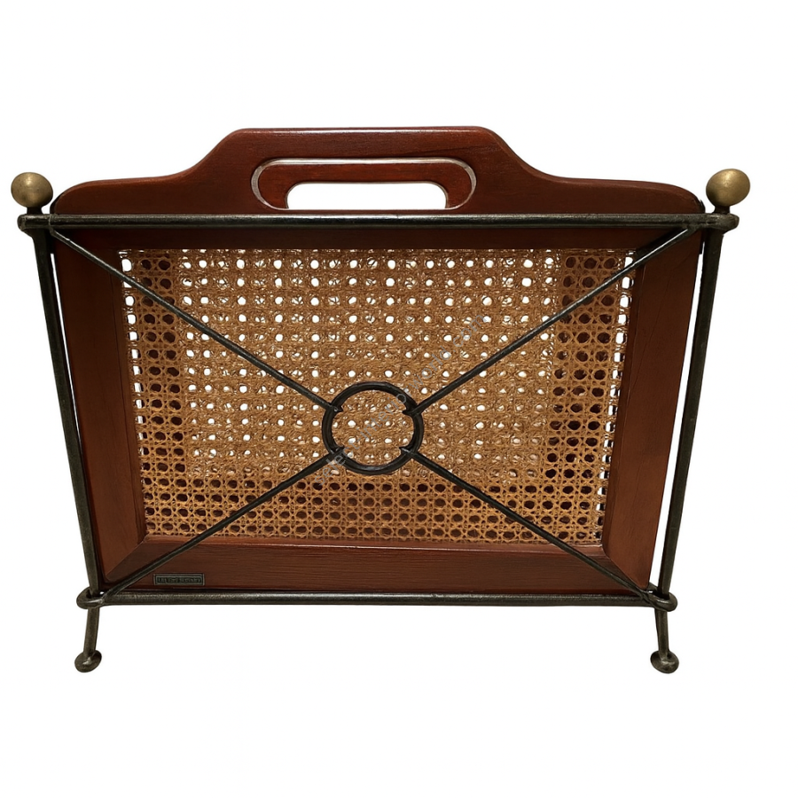 Elevate your décor with this Grange‑style vintage magazine rack—a harmony of artisanal ironwork, cane texture, and wood warmth.