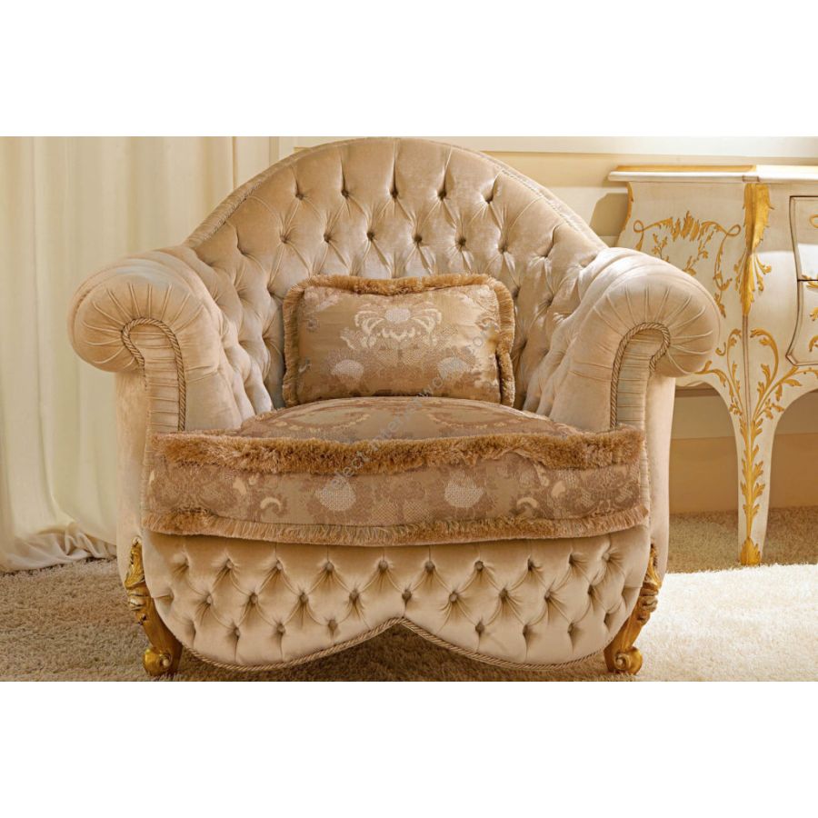 Classic living room upholstered and covered in fabric embellished with an elegant capitonné workmanship. The finely worked lower part represents the unmistakable characteristic of this collection that combines sinuous lines with high quality artisan finishes. These characteristics make the furniture of this collection timeless, classics forever.